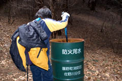 生藤山をでてからいくらか曇ってきました。鎌沢側の道と違い、林間の道には所々雪が積もっています。防火用水にも氷が厚く張っていました。
