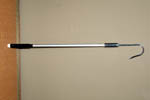 これが一番元の姿。振り出しの柄は5.4mまで伸びます。元々付いていたナイロンモノフィラメントのネットは少し硬く使いにくい気がしたので、柔らかめの編紐ネットに付け替えてあります。ところが、柔らかいネットは水中に入れたときに形が崩れて少し魚を入れにくいときがあること、魚のヌル・臭い・イカスミが付きやすいこと、またフックが引っかかって取れにくくなることが極たまにあることが分かりました。モノフィラのネットは何かの拍子に捨ててしまっていたので、編紐のまま使っています。今ではさほど気にならなくなっています。