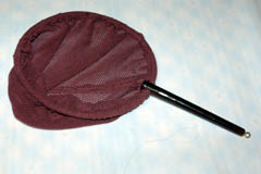 また、箪笥の底に25年くらい入ったままコヤシになっていた混紡のメッシュのTシャツがありましたので、これをジョキジョキと切ってネットにしました。色もいい感じです。若かりし日がよみがえってハサミを入れるときは若干躊躇してしまいましたが、Tシャツの方もこのような復活を遂げることができるとは想像していなかったと思います。 |
