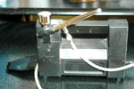 ウェイト、ワイヤをそれぞれの溝にきちんとはめ、両面を合わせます。これ以降、両面が分離することはありません。あわせた後、アイの部分から瞬間接着剤を流し込みます。これで両面が接合されます。