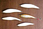 優れた見本を見ながら作成していくと、自分の予想よりはましなものが作れる気がしますが、もっと綺麗に作ろうと思えばいくらでも凝ることが出来ます。ルアーとして実釣に耐えるかどうかの大きなポイントであるウェイトバランス等は、見た目ではわかりません。本当にまともなものを作ろうと思えばずっと大変で奥の深い趣味といえます。 |