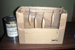 室温にもよると思いますが、乾燥時間は5-6時間程度取り、どぶ漬けと乾燥の繰り返しを10回くらい繰り返します。ちょっと回数が多めかもしれませんが、土日に切り出しと成形を行い平日の朝晩に漬けて乾燥させると、次の休日までに10回くらい塗装できます。最後の塗装後は丸一日乾燥させ、次の工程に入る前に、800-1000番くらいのサンドペーパーで磨き、小さな凸凹を均しておきます。 |