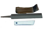 アルミ箔を適当な大きさ(2枚で左右からボディーを挟む)の短冊に2枚切り出し、ウロコ模様をつけます。金属の平やすりに乗せて、ボンドなどについているプラスチックのへらでこすりつけると、やすりの縞々が転写されます。細かく綺麗な模様を移すにはやすりが一番ですが、台所のザルでもなんでもウロコ風になりそうなものは試して見る価値はあります。