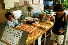 直売所に新鮮な果物が並べられているとなんとなく1000円単位くらいで普段より多めに買ってしまいます。梨の直売所で、果樹園に侵入して捕らえられたカブトムシやクワガタを譲ってくれるところもあります。 |